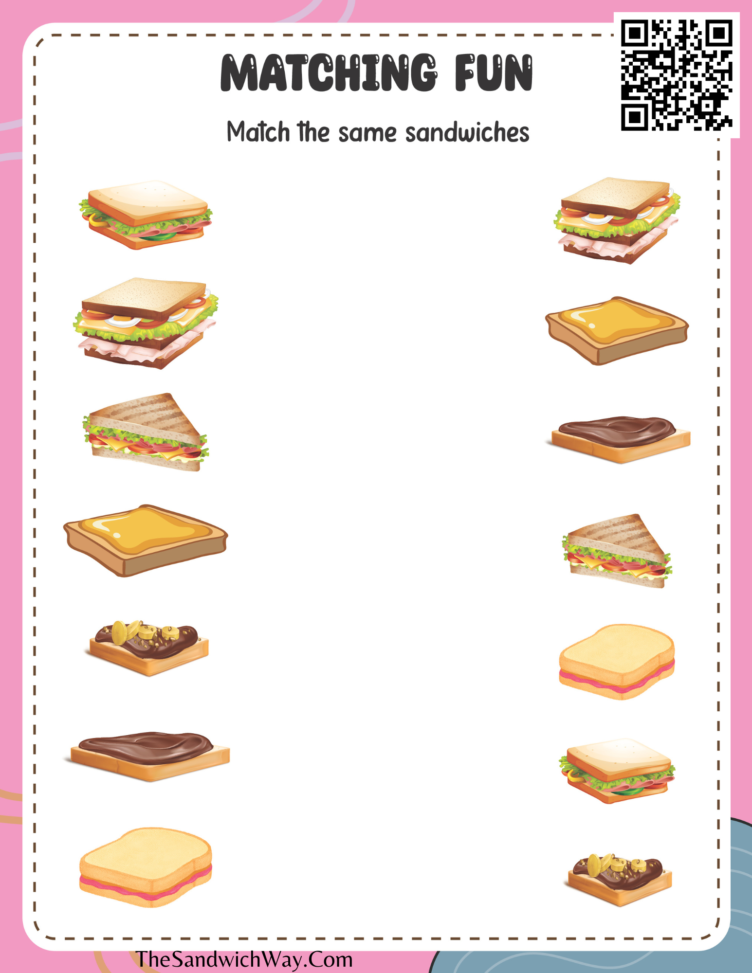 Boost young learners visual and cognitive skills with our free matching worksheet! Kids will have fun drawing lines to match identical sandwiches, reinforcing attention to detail and pattern recognition. Perfect for classrooms or at-home learning.