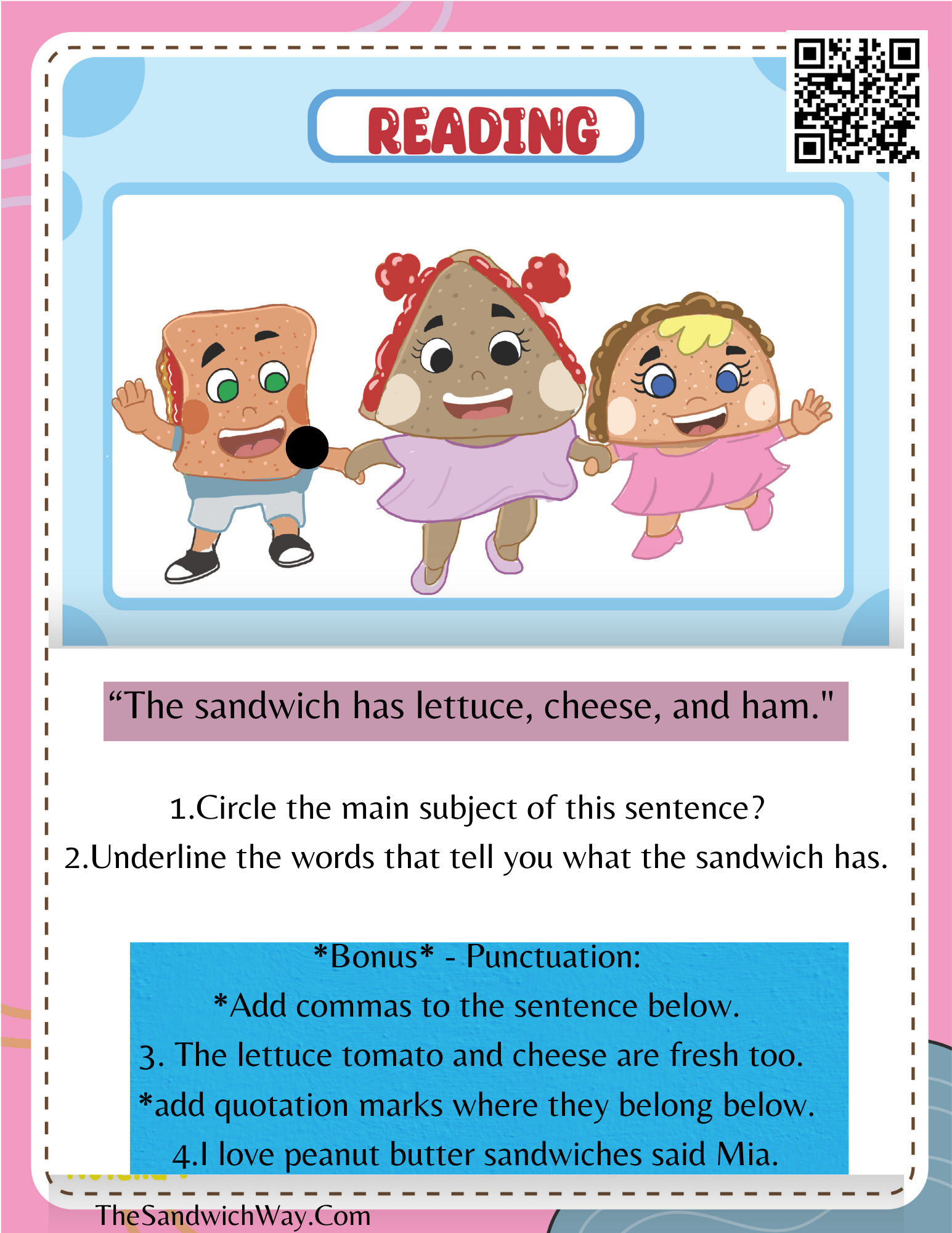 Free Kids' Reading & Grammar Worksheet: Find Subjects, Details, and Punctuation!
